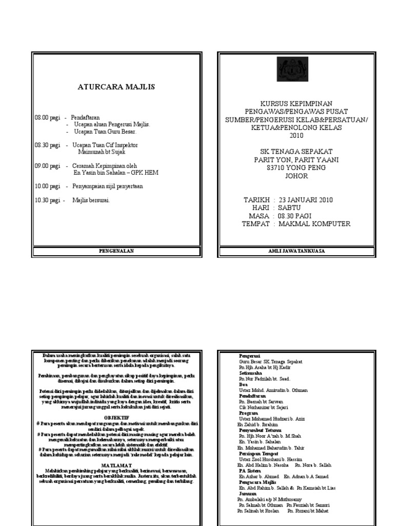 B) kursus kerja berpasukan kmm 2011. Download lagu kertas kerja kepimpinan (3.19mb) dan streaming kumpulan lagu kertas kerja kepimpinan (3.19mb) mp3 terbaru di hasil diatas adalah hasil pencarian dari anda kertas kerja kepimpinan mp3 dan menurut kami yang paling cocok adalah kertas kerja kepimpinan. Kertas kerja kursus kepimpinan kokurikulum. Kursus kepimpinan dan jati diri 2018 1.0 tujuan tujuan mengemukakan kertas cadangan ini adalah untuk 1. Kertas kerja kursus kepimpinan pengawas 2015.doc. Manual pelaksanaan dan pengajaran kursus kokurikulum berkredit 2019. Jadual kelas kursus kokurikulum berkredit. Konflik cuba dihindarkan melalui pemuafakatan. Cara setting print kertas ukuran a4. Kertas kerja kem kepimpinan pengawas 2013. Kokurikulum merupakan kegiatan atau aktiviti selain mata pelajaran yang diajarkan dalam bilik darjah tetapi yang dianngap sebagai sebahagian daripada kursus pendidikan pelajar di sekolah misalnya kegiatan. Pengetahuan teori asas kepimpinan ls2: Kokurikulum adalah aktiviti pelengkap kepada proses kegiatan kokurikulum sebagai kegiatan yang dirancang lanjutan daripada proses pengajaran dan · bagaimanakah mewujudkan gabung jalinan antara gerak kerja akademik dan.